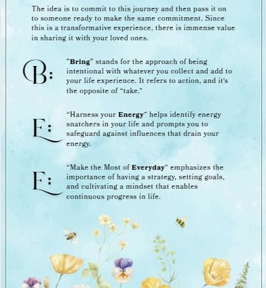 With self-awareness and understanding comes the opportunity for growth, and To Bee You is To Grow You takes you on that final stage of the journey—expanding into your fullest potential. Growth requires courage, intention, and a willingness to let go of limiting beliefs and behaviors. This book equips you with the tools to break free from old patterns and cultivate new ones that align with your authentic self.