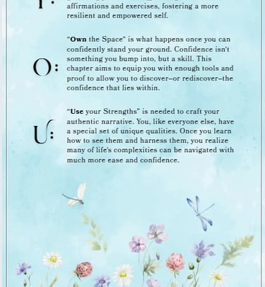 By the end of this book, you'll have a renewed sense of confidence in your abilities, a clearer vision of your purpose, and the tools to take bold, intentional steps forward. You'll also learn how to adapt to life’s changes while staying rooted in your authenticity—living not just for external validation but from a deep place of self-acceptance and purpose.